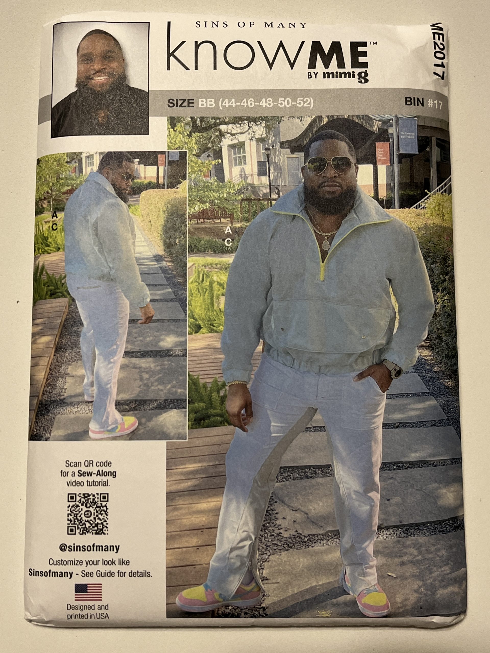 The KnowMe ME2017 (44-46-48-50-52) Men’s Pullover Jacket and Pants sewing pattern features a half-zip pullover jacket with a large front pocket that snaps shut. The pants feature zippers at the bottom of the legs. A variety of fabrics can be used to create this ensemble, allowing you to achieve a unique style that is all your own. Use cooler, breathable fabrics for warmer weather, and heavier fabrics for cooler weather. Versatile and comfortable.